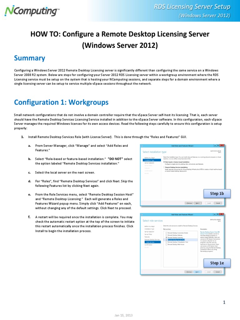 RDS Licensing Server 1 Setup (Windows Server 2012) Jan 15, 2013 HOW TO: Configure a Remote Desktop Licensing Server (Windows Server 2012) Summary ... Fetch Full Source